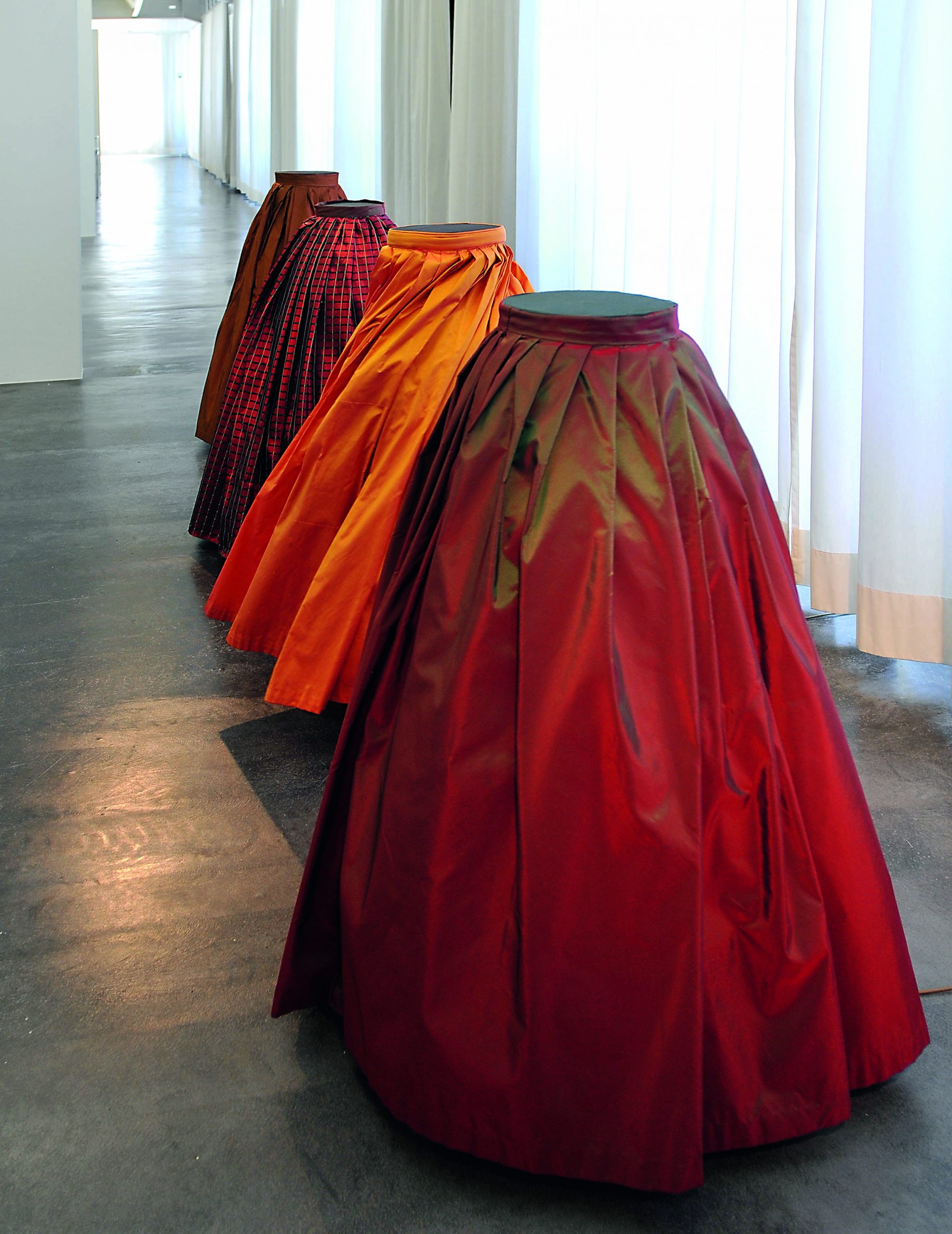 Anja Luithle zeigt im Foyer der Kreissparkasse Ravensburg eine Auswahl großformatiger Bilder aus Textilien, eine kinetische Installation sowie Arbeiten aus ihrer Werkreihe „Wertpapiere“. Die Werke von Anja Luithle lassen sich zwischen Körper, Raum, Bewegung und zwischen Sichtbarem und Unsichtbarem einordnen. Ihre Objekte und Bilder entstehen aus der Auseinandersetzung mit Identität, Erinnerung und Wahrnehmung. Bewegung, Licht und Material führen dabei einen leisen Dialog über Gegenwart und Vergänglichkeit. Die großformatigen Stoffbilder aus der Serie „Zeitspaltung“ entfalten ihre Wirkung durch farbliche Schichtungen und subtile Farbwechsel. Stoff wird hier nicht nur Träger, sondern selbst zum Thema – als Membran zwischen Innerem und Äußerem, als Fläche, die Erinnerungen aufnimmt und wieder freigibt.